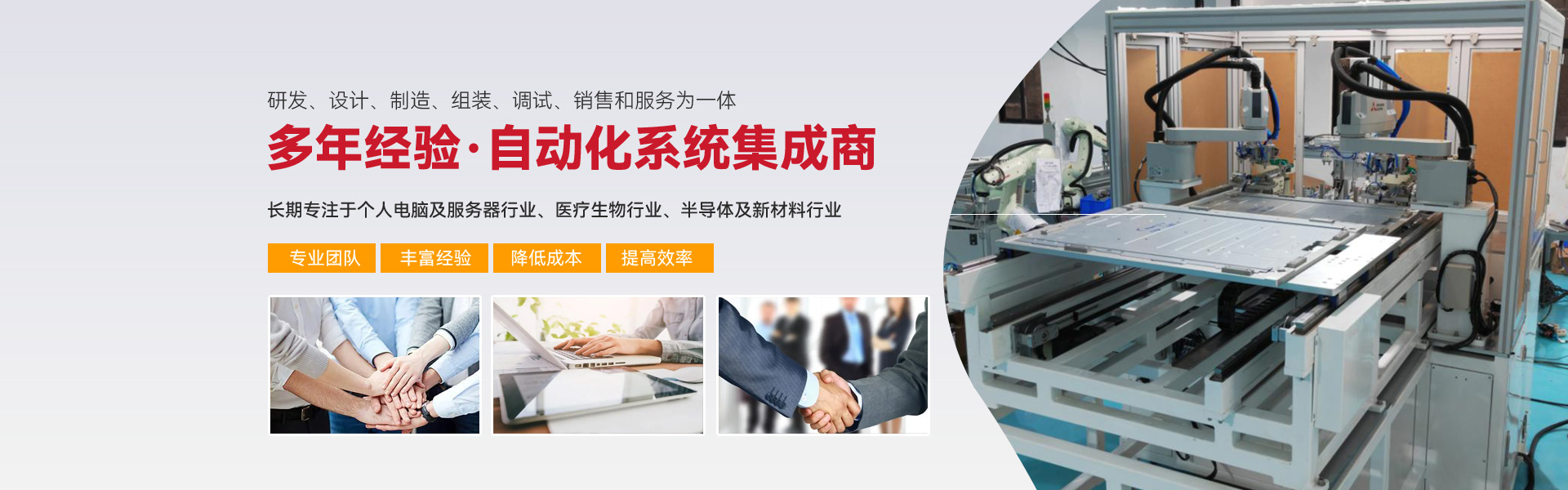 ※ 長期專注亍個人電腦及服務(wù)器行業(yè)、醫(yī)療生物行業(yè)、半導體及新材料行業(yè)三大行業(yè)的自動化組裝、檢測設(shè)備的生產(chǎn)與開發(fā)。
